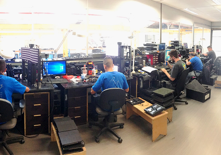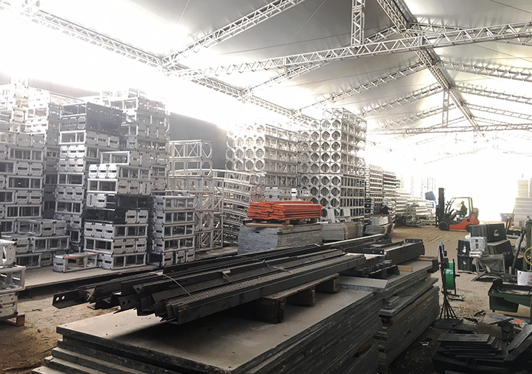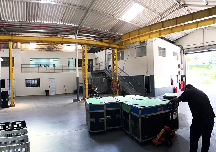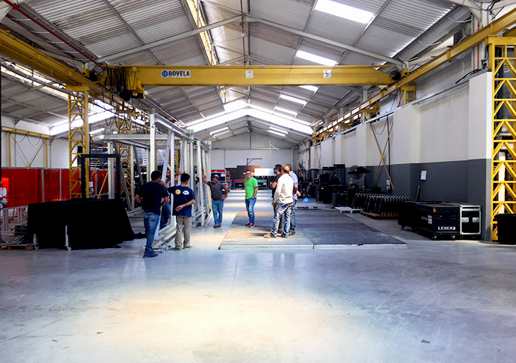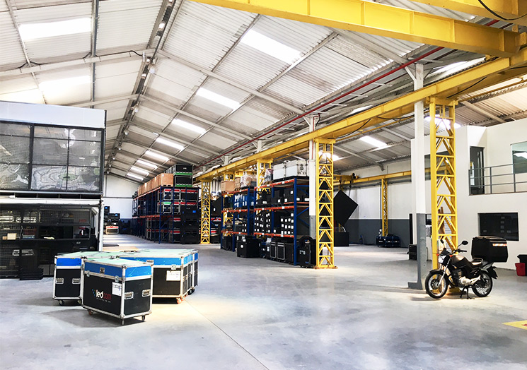 Possuímos o maior parque de telas de LED e projetores do país, além de uma parceria estratégica com a maior empresa de estruturas metálicas para eventos do Brasil. Contamos também com marcenaria e frota de transporte própria. Somos a única empresa com mais de 3 mil m² de área disponível para testar o seu projeto antes do evento.